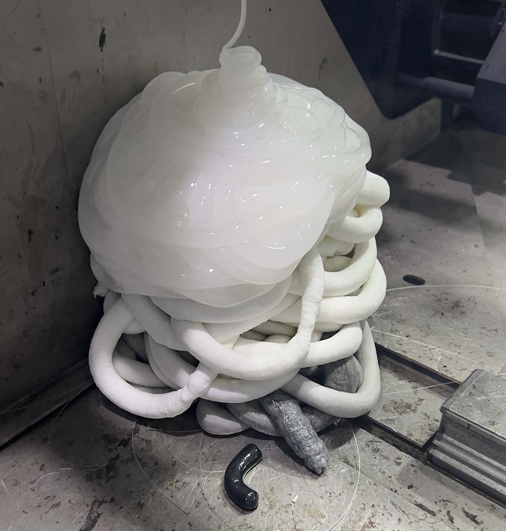 Die Rückstände – ob hartnäckige „Black Specks“ oder Farbreste – setzen sich fest an Schnecke, Zylinder, Rückstromsperre, Heißkanal, Blaskopf, Flachdüse und im Extruder.