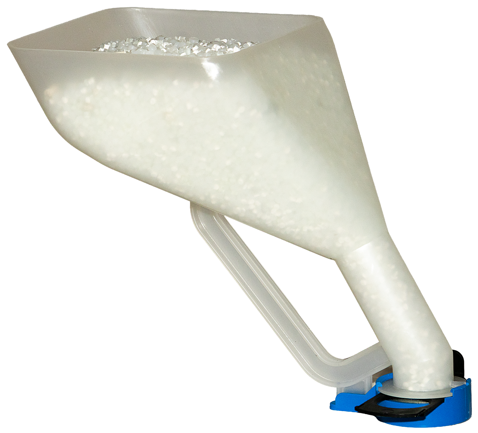Der Granulattrichter wurde speziell für die Dosierung kleiner Mengen entwickelt. Die Kombination aus starkem Magnetfuß und manuellem Absperrschieber ermöglicht ein sauberes Arbeiten ohne Verrutschen oder Verschütten.